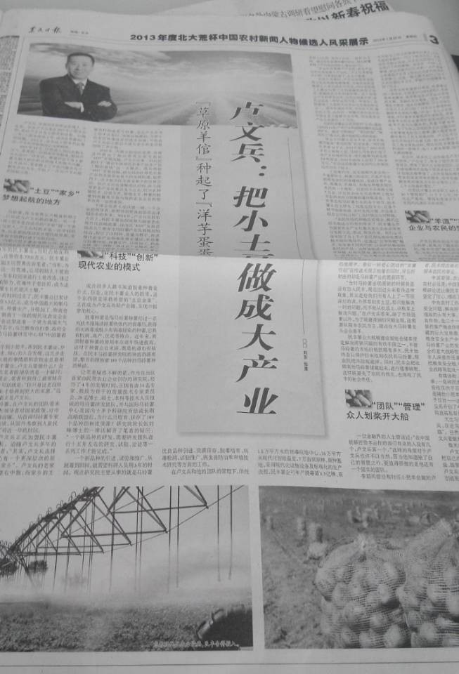 盧文兵:把小土豆做成大產(chǎn)業(yè)(2013北大荒杯農村新聞大人物候選人風采展示)